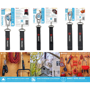 - VELCRO® Brand Easy Hang™ Straps provide easy and secure storage of domestic products such as ladders, bicycles etc
